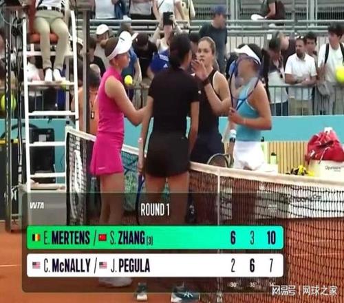 雙打賽場:在首輪一場較量中,3號種子張帥/梅爾滕斯在搶十3-7落后的情況下連下7分,最終以6-2 3-6 10-7擊敗美國組合麥克納莉/佩古拉,收獲開門紅。