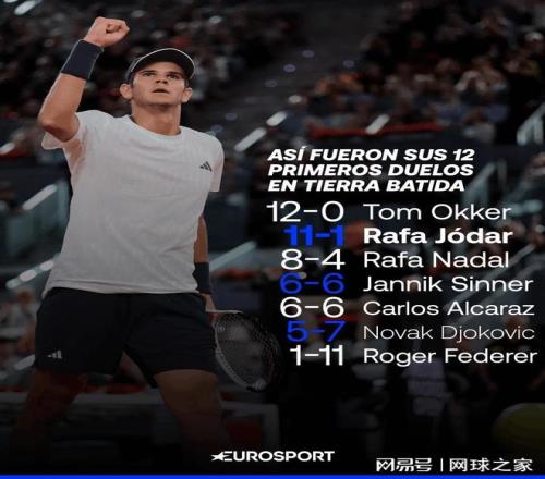 此外,闖過豐塞卡這道關后,霍達爾還創造了一項了不起的成就。在職業生涯迄今參加的前12場紅土巡回賽上,他豪取11場勝利,只輸了一場,在這項數據方面直接超過了西班牙傳奇納達爾當時創下的8勝4負,僅次于現在排在首位的湯姆奧克,在這份榜單上硬生生將老大哥納達爾擠到了第三位。